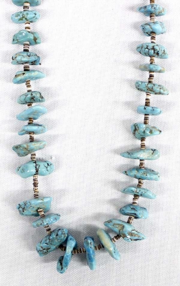 Native American Navajo Turquoise Nugget and Shell Heishi Necklace, measures 24''L end to end, sterling clasp