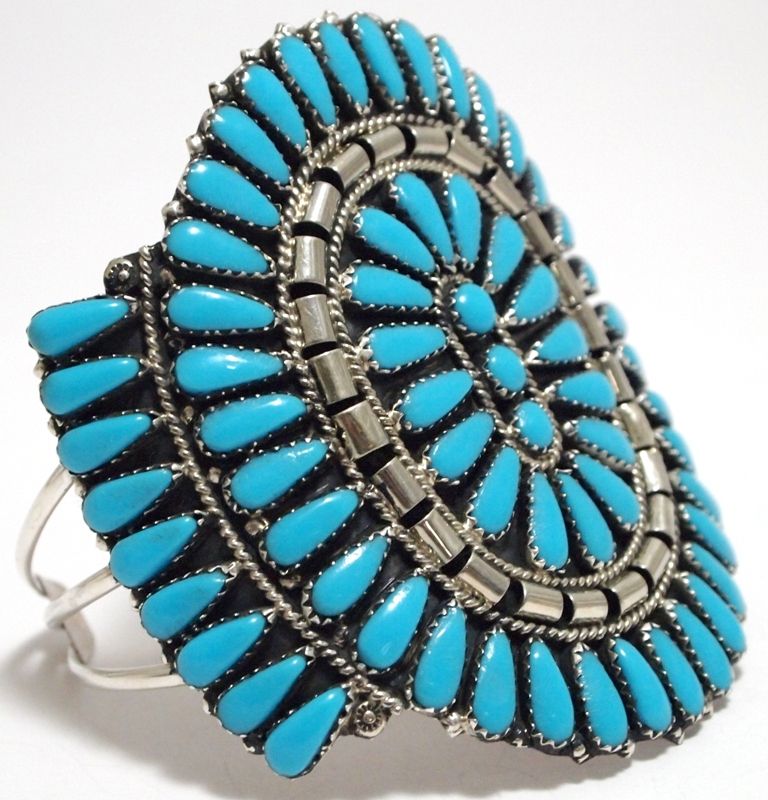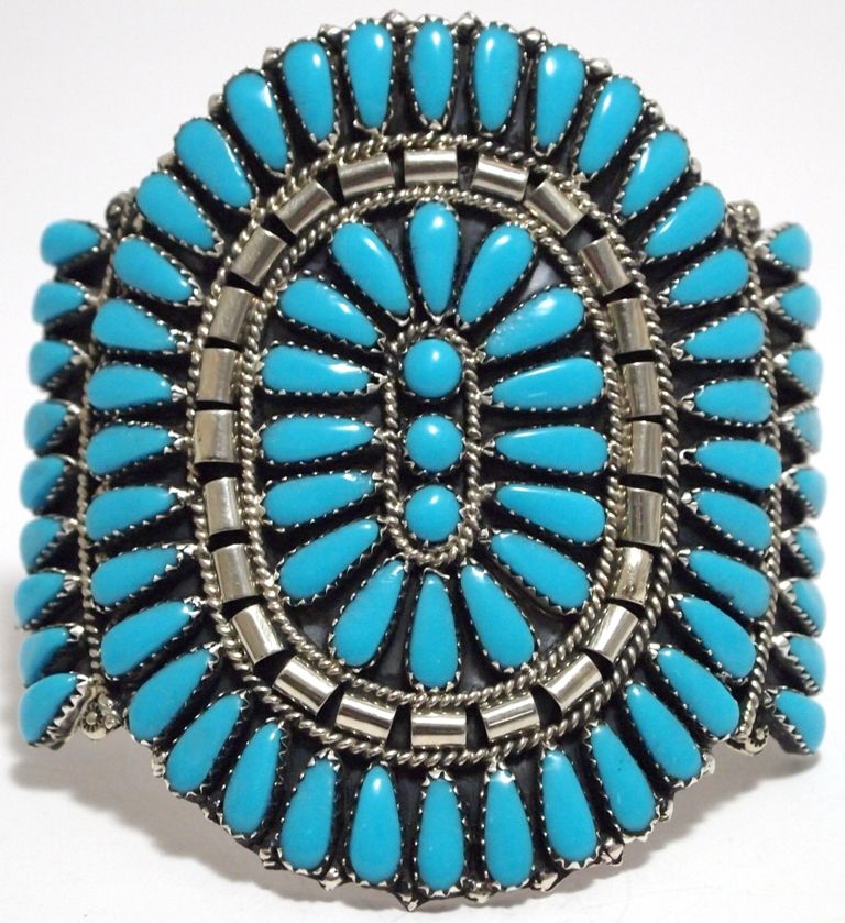 Navajo Turquoise Petit Point Cluster Sterling Silver Cuff Bracelet - Juliana Williams
