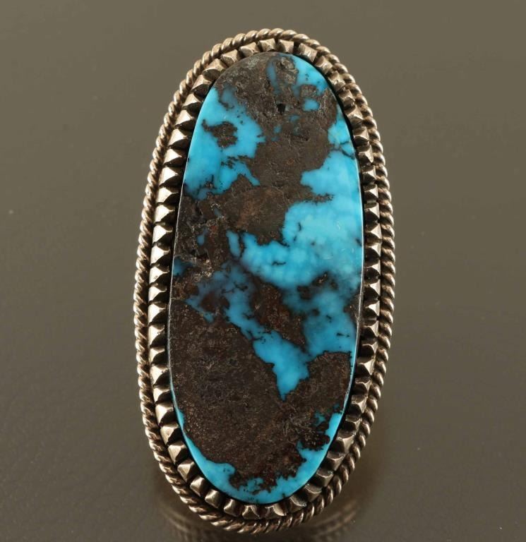 Large beautiful stone with silver matrix set in sterling made and marked by Bennie Ratian. From the Spike Flanders Collection silver City New Mexico