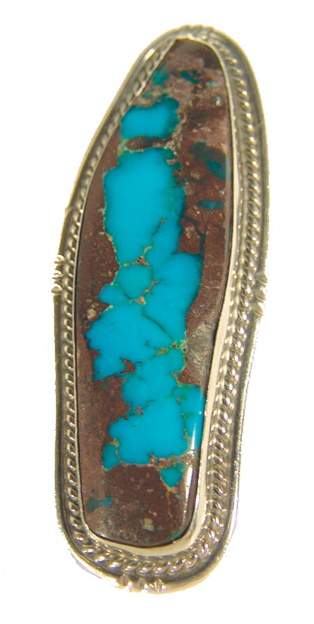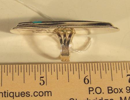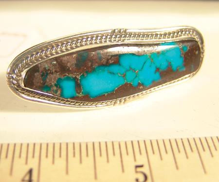 Beautiful elongated all-silver ring set with a single Bisbee stone. Size 5-1/2 (2-1/2" long)