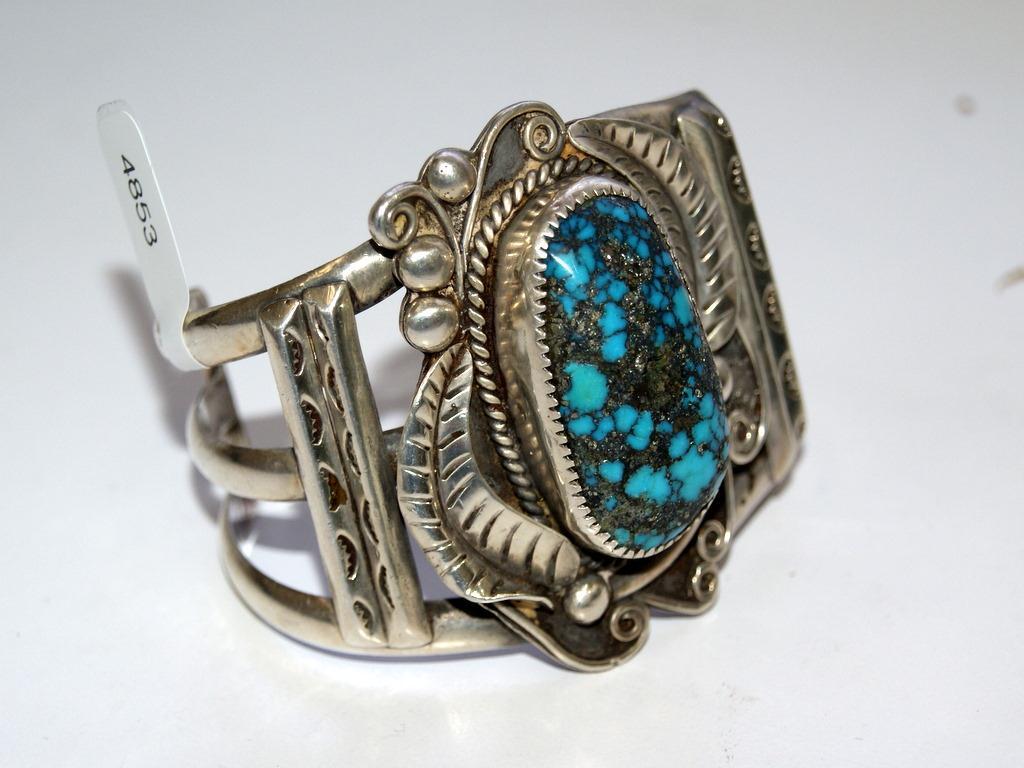 Retail $ 1550.00 Navajo Old Pawn Joseph Waipi Turquoise & Sterling Silver Cuff Bracelet 90.6 Grams silver