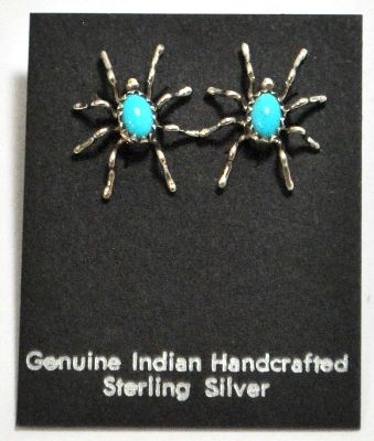 Navajo Turquoise Spider Sterling Silver Post Earrings - Anna Spencer