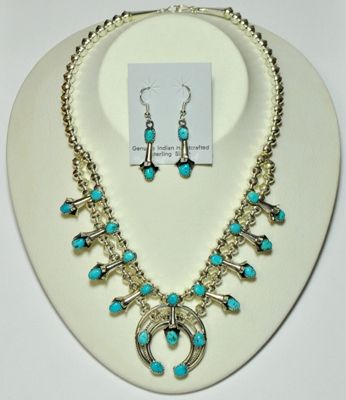 Navajo Turquoise Squash Blossom Necklace & Earrings Set - Lenore Garcia