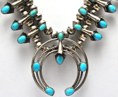 Navajo Turquoise Squash Blossom Necklace & Earrings Set - Phil & Lenore Garcia