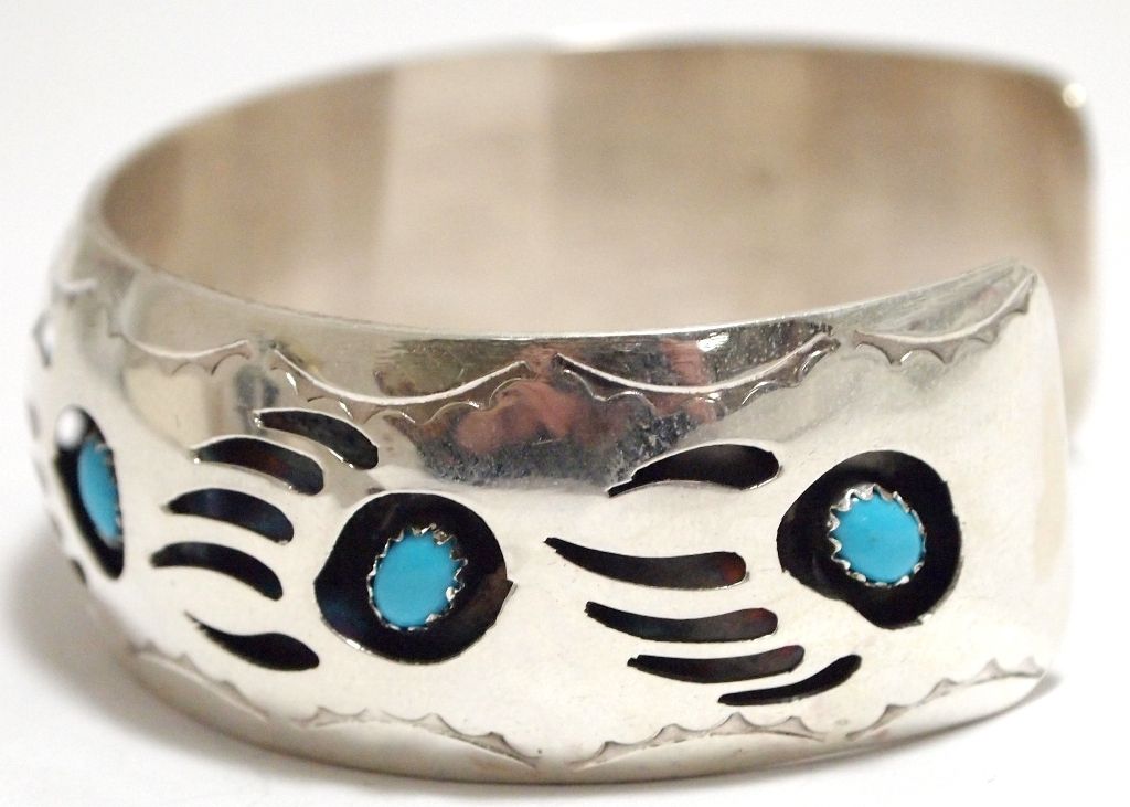 Navajo Turquoise Sterling Silver Bear Paw Cuff Bracelet - Pearlene Spencer