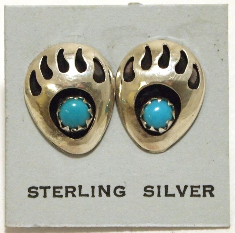 Navajo Turquoise Sterling Silver Bear Paw Post Earrings - Joey McCray