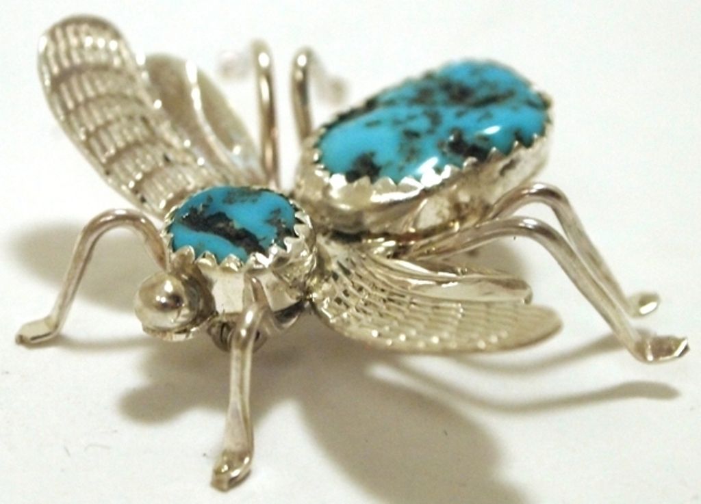 Navajo Turquoise Sterling Silver Bug Pin - Juan Begay, Jr.
