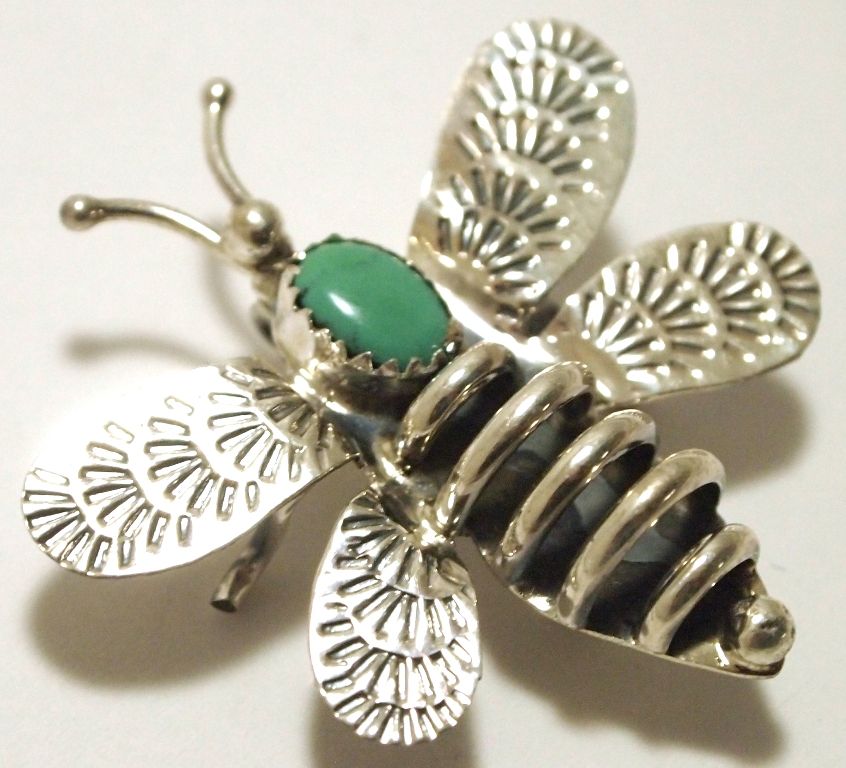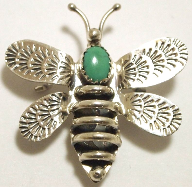 Navajo Turquoise Sterling Silver Bumblebee Pin - Tim Yazzie