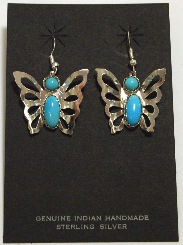 Navajo Turquoise Sterling Silver Butterfly French Hook Earrings - Herman Lee