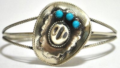 Navajo Turquoise Sterling Silver Cowboy Hat Cuff Bracelet - Running Bear