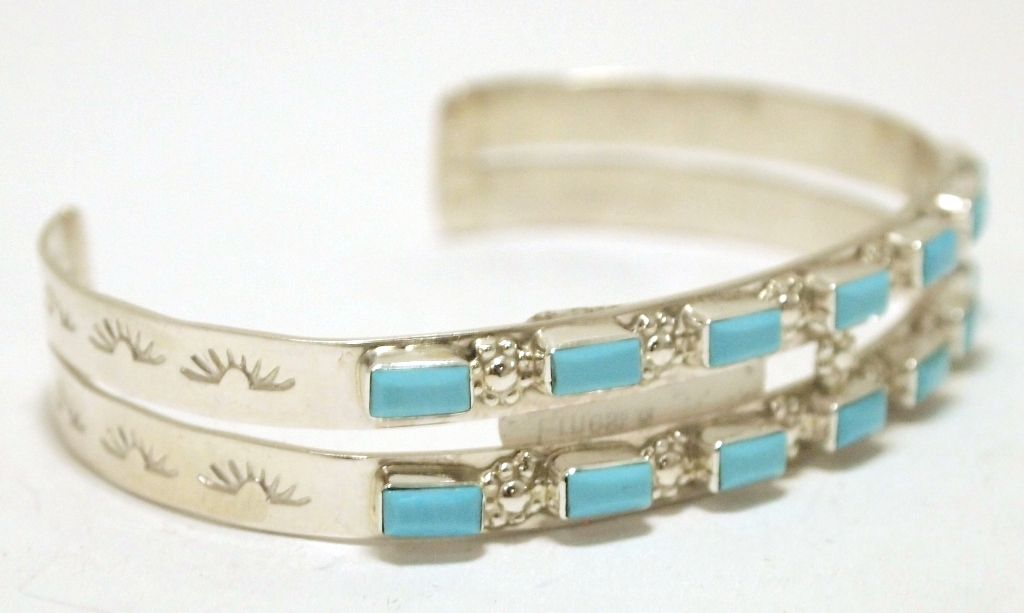 Navajo Turquoise Sterling Silver Cuff Bracelet - Ernest & Vivian Bewanika
