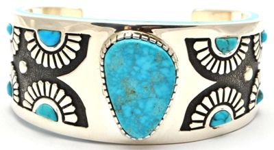 Navajo Turquoise Sterling Silver Cuff Bracelet - Michael Perry