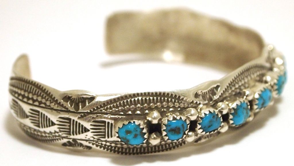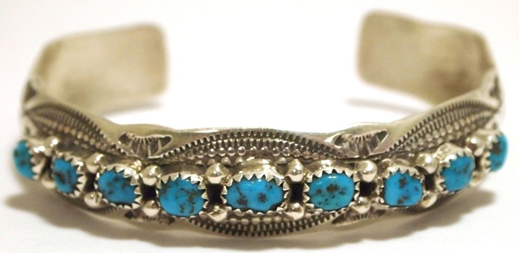 Navajo Turquoise Sterling Silver Cuff Bracelet - Wilson Begay