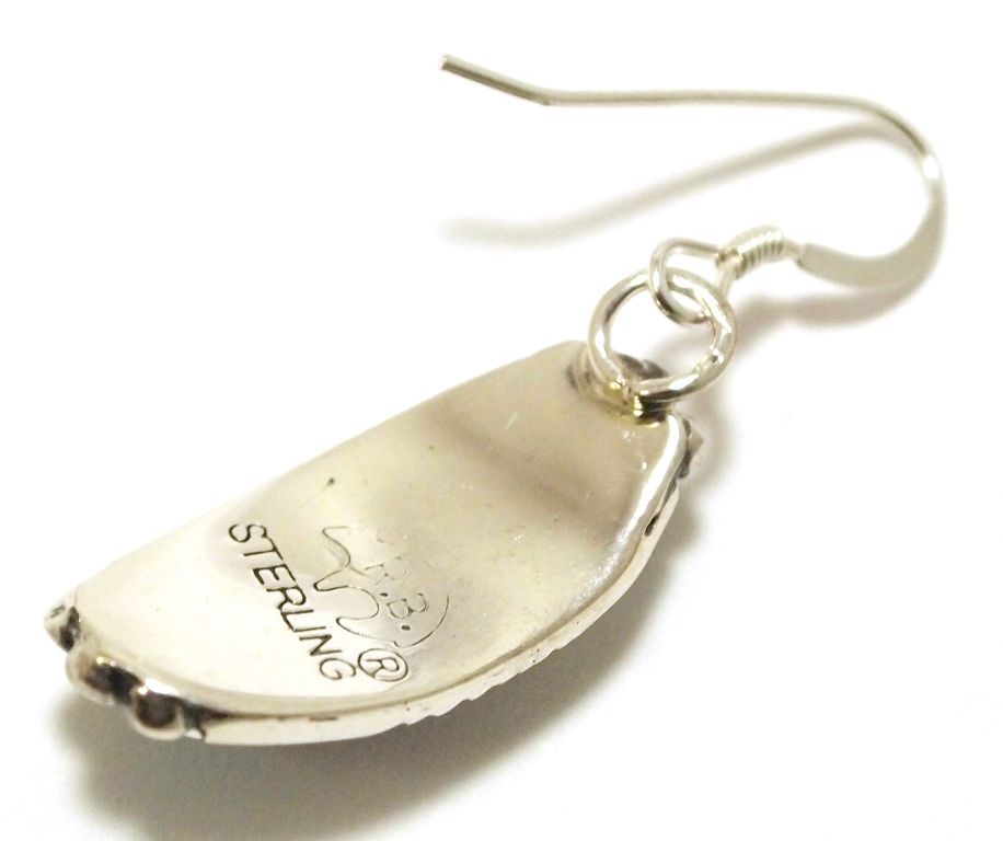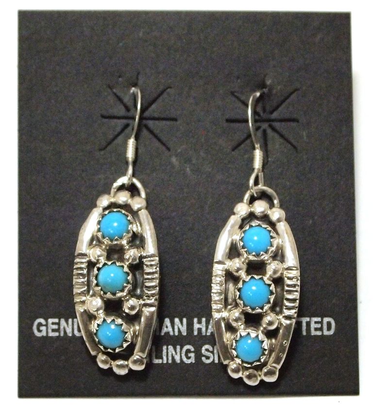 Navajo Turquoise Sterling Silver Curved French Hook Earrings - Running Bear
