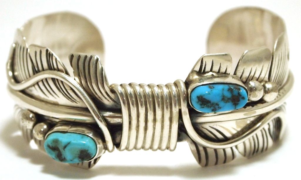 Navajo Turquoise Sterling Silver Feather Cuff Bracelet - Mike Thomas, Jr.