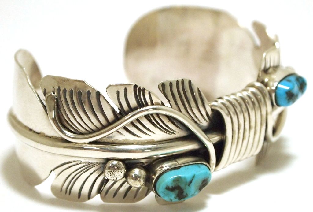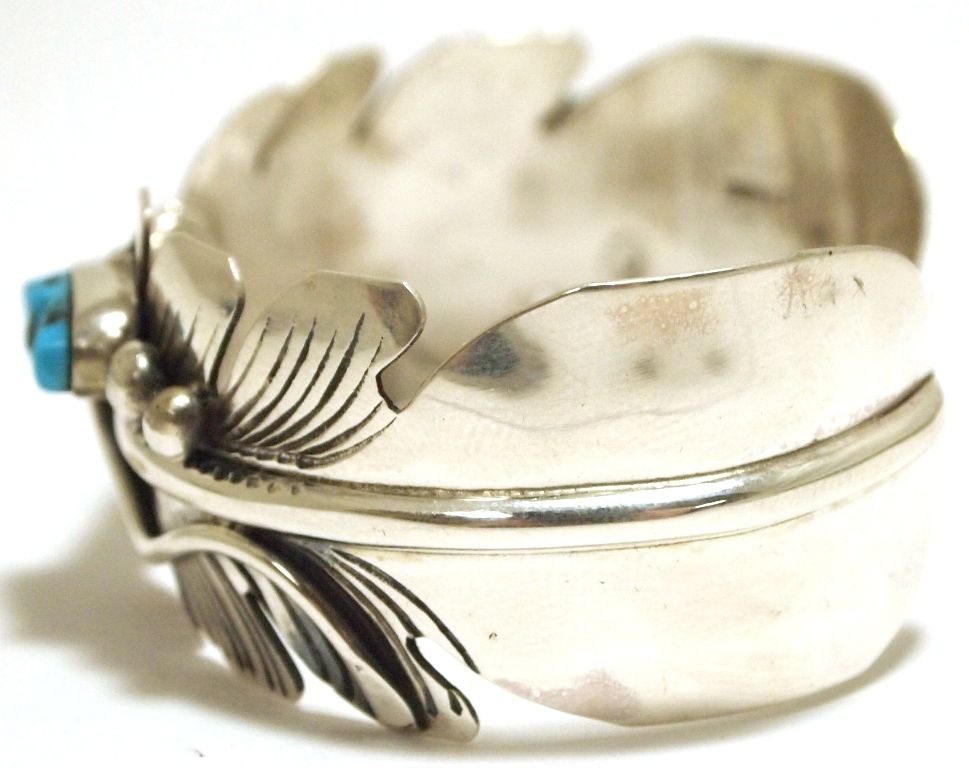 Navajo Turquoise Sterling Silver Feather Cuff Bracelet - Mike Thomas, Jr.