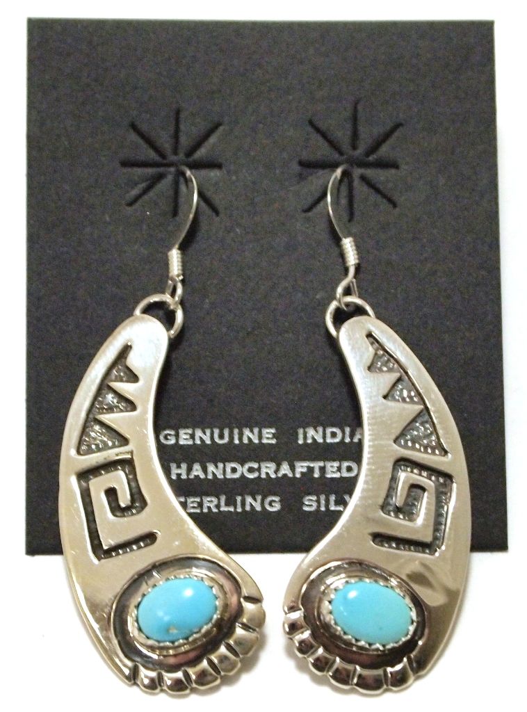 Navajo Turquoise Sterling Silver French Hook Earrings - Running Bear