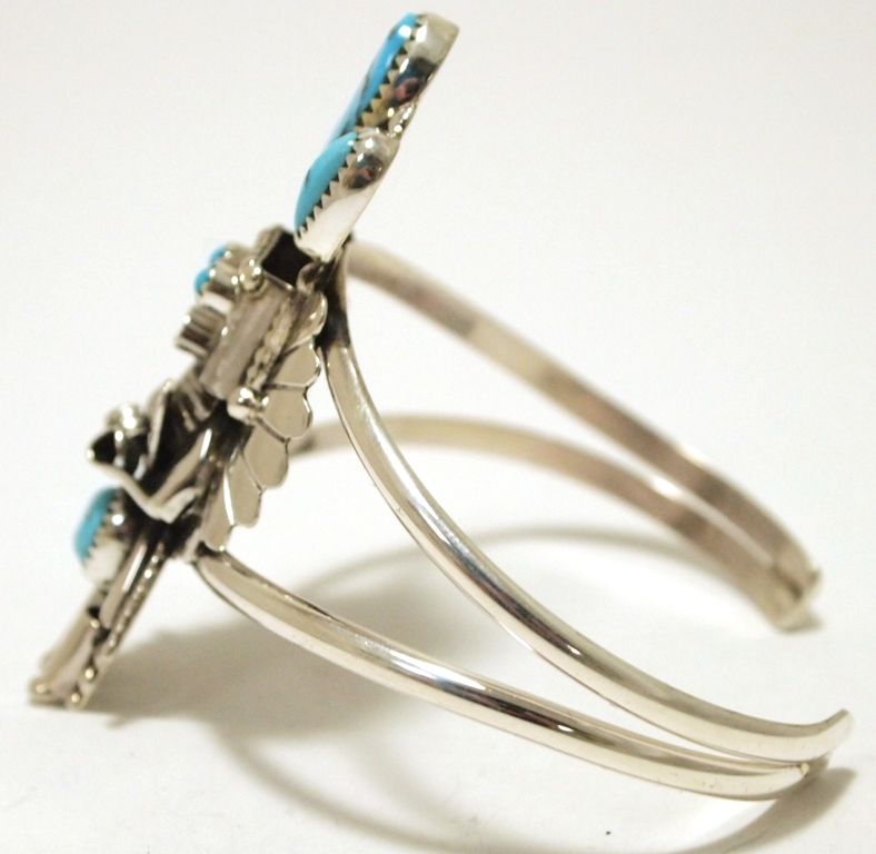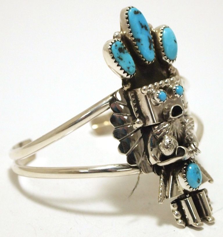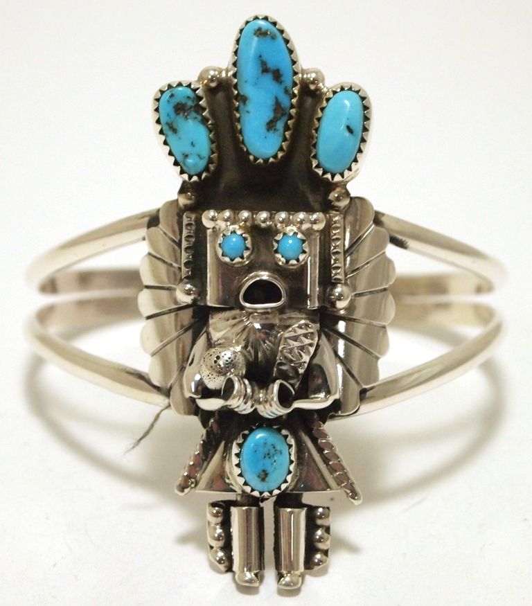 Navajo Turquoise Sterling Silver Kachina Cuff Bracelet - Doris Smallcanyon