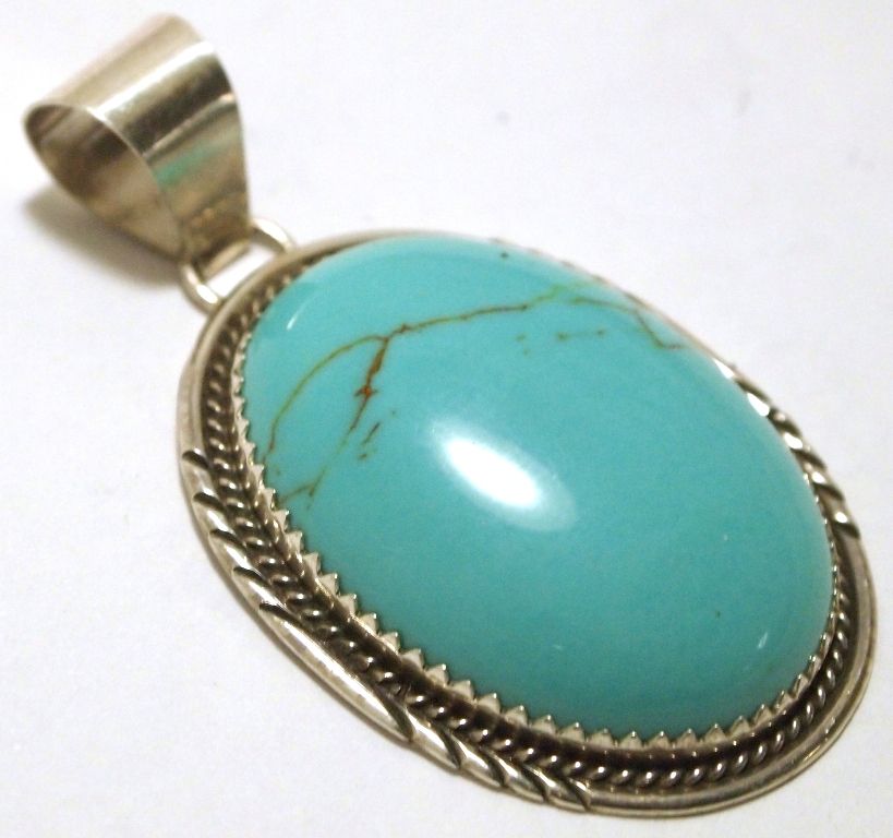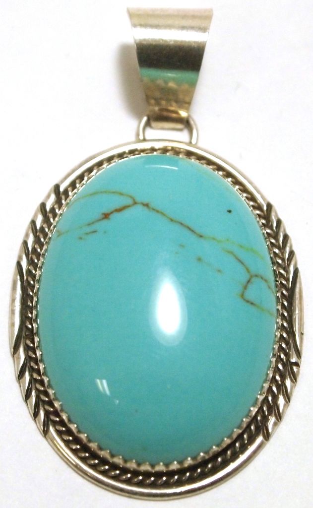 Navajo Turquoise Sterling Silver Pendant - Herman Lee