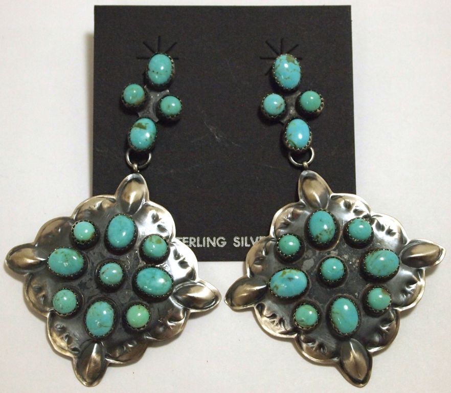 Navajo Turquoise Sterling Silver Post Earrings - Albert J Brown