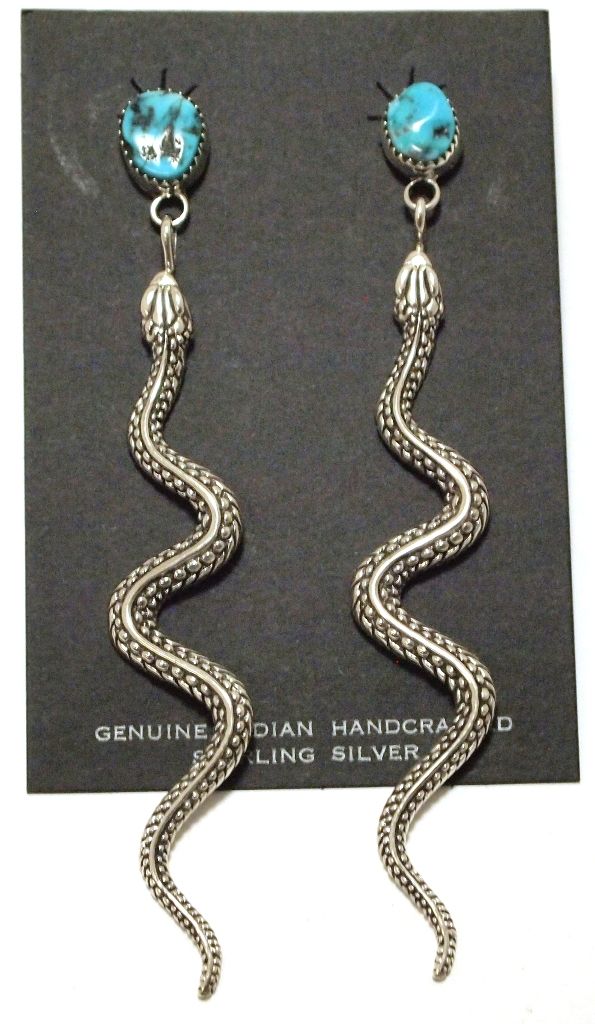 Navajo Turquoise Sterling Silver Snake Post Earrings - Running Bear