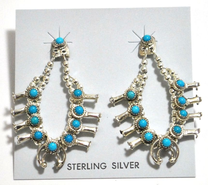 Navajo Turquoise Sterling Silver Squash Blossom Post Earrings - Larry Curley