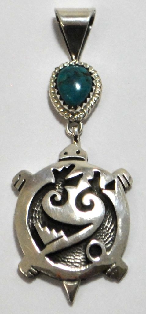 Navajo Turquoise Sterling Silver Turtle Pendant
