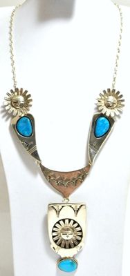 Navajo Turquoise Sun Face Sterling Silver Necklace with Pins - Nelson Morgan