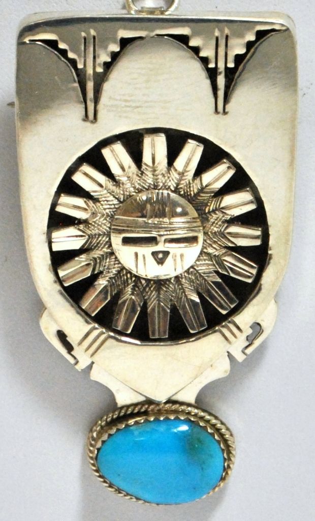 Navajo Turquoise Sun Face Sterling Silver Necklace with Pins - Nelson Morgan