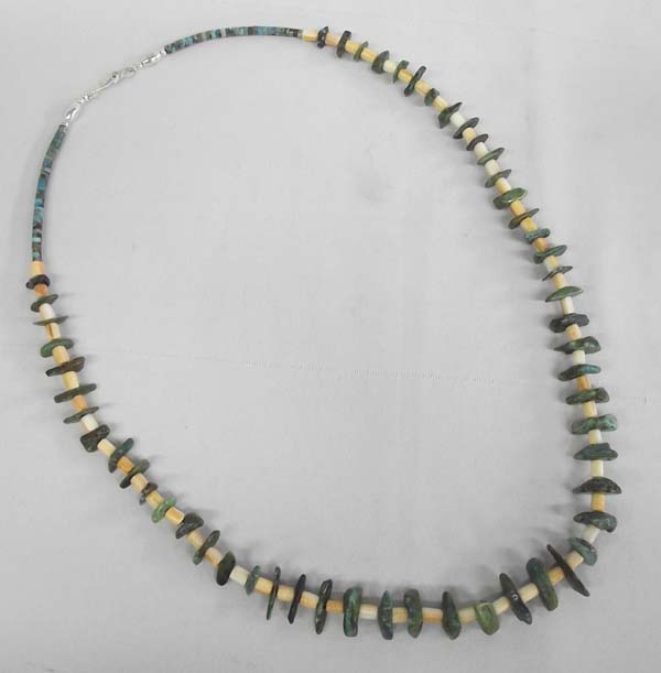 Native American Indian made by artist Rita Begay. Turquoise heishi, red shell heishi and turquoise flat nuggest with sterling silver findings. Measures end to end approx. 30 inches. Buyers Pay Actual Shipping and Handling Charges(see terms and conditions for more information).