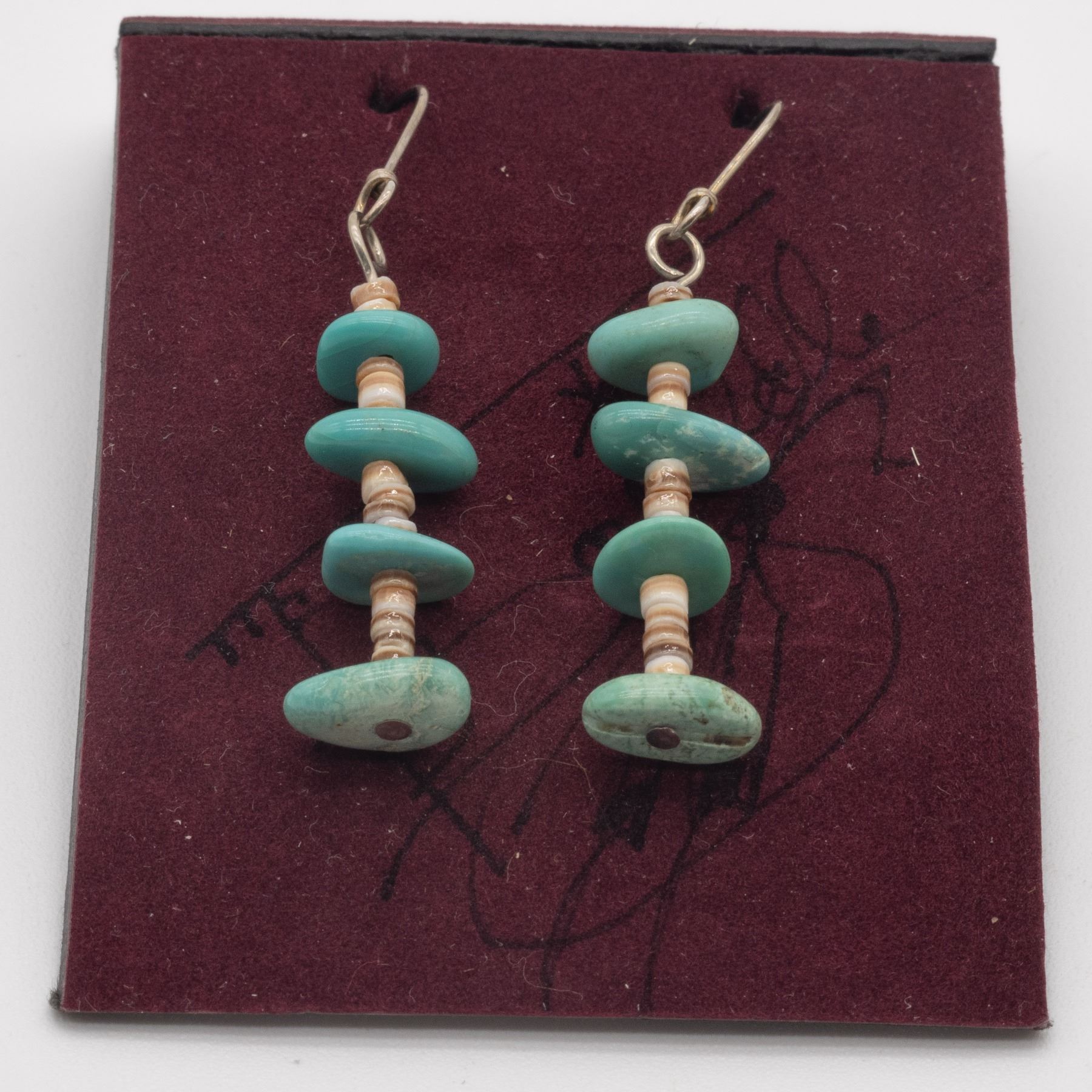 Native American Navajo Turquoise and Shell Heishi Earrings, measure 3/8'' x 2''L