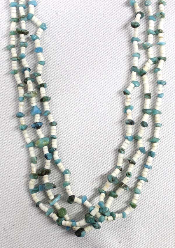 Native American Navajo Turquoise and Shell Heishi Necklace, measures 22.5'' end to end, sterling accents beads and clasp