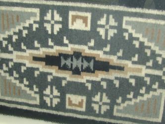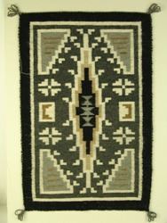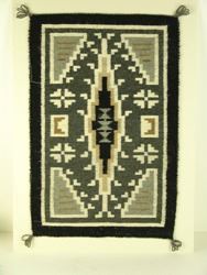Beautiful, finer weave, traditional Two Gray Hills rug done in natural earth tones and geometrics. Very good condition. Ca. 1970s-1980s. 27" x 18"