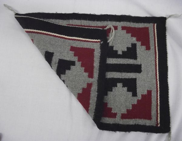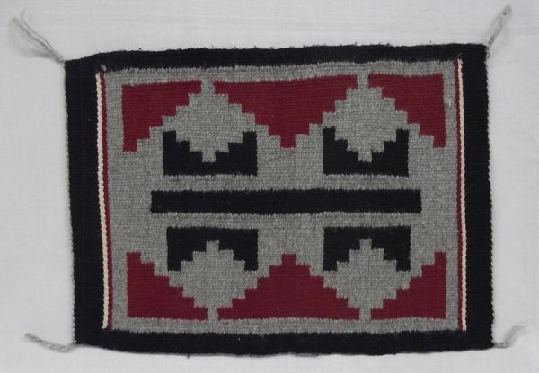 Navajo Two Gray Hills Woven Sampler. Measures 17'' x 12.5''. Gray, black ivory and red colors are tightly woven.