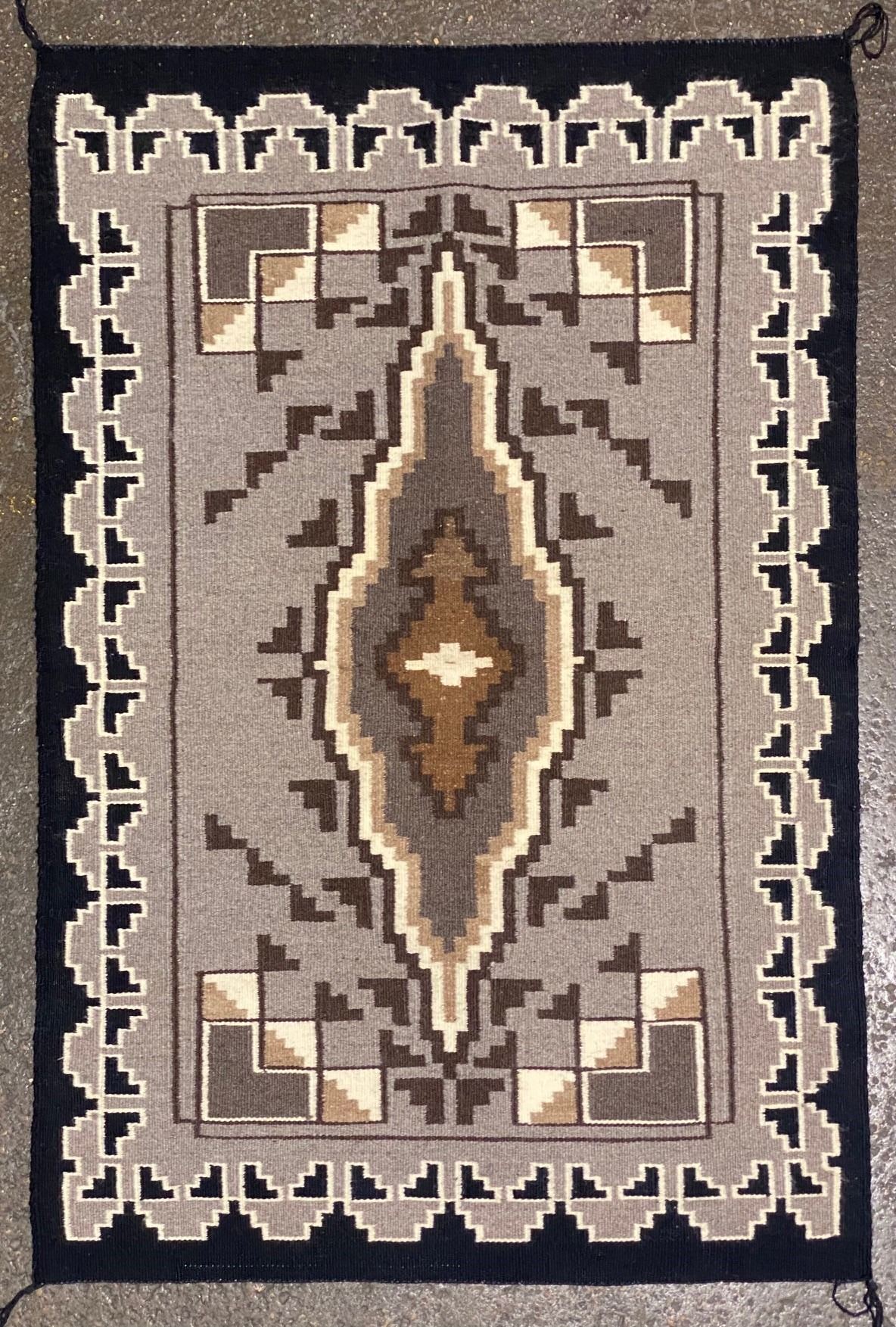 Measures 42.5 by 28-inches. Out of the Estate of the Johnson's who collected a vast number of Navajo Weavings and Pueblo Pottery.