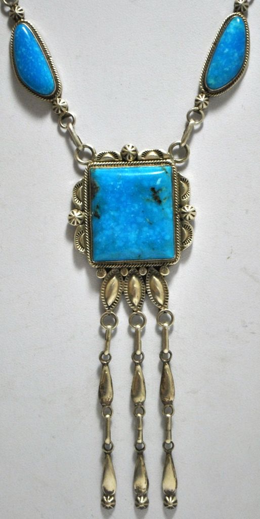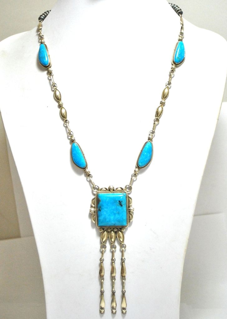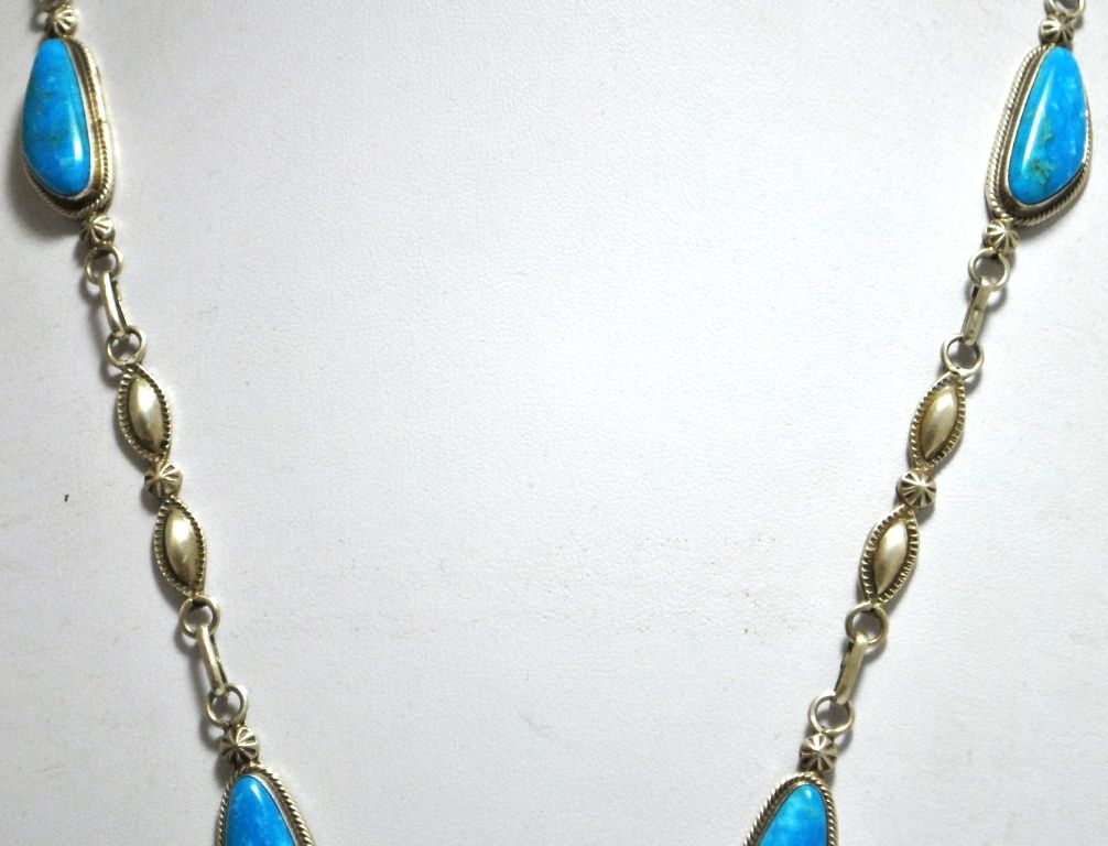 Navajo Valley Blue Turquoise Sterling Silver Necklace - Running Bear