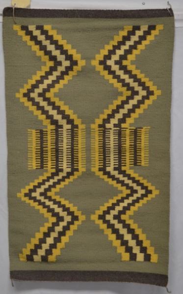 1970s stairstep diamond design, woven by Mary Thompson, 44" x 25"