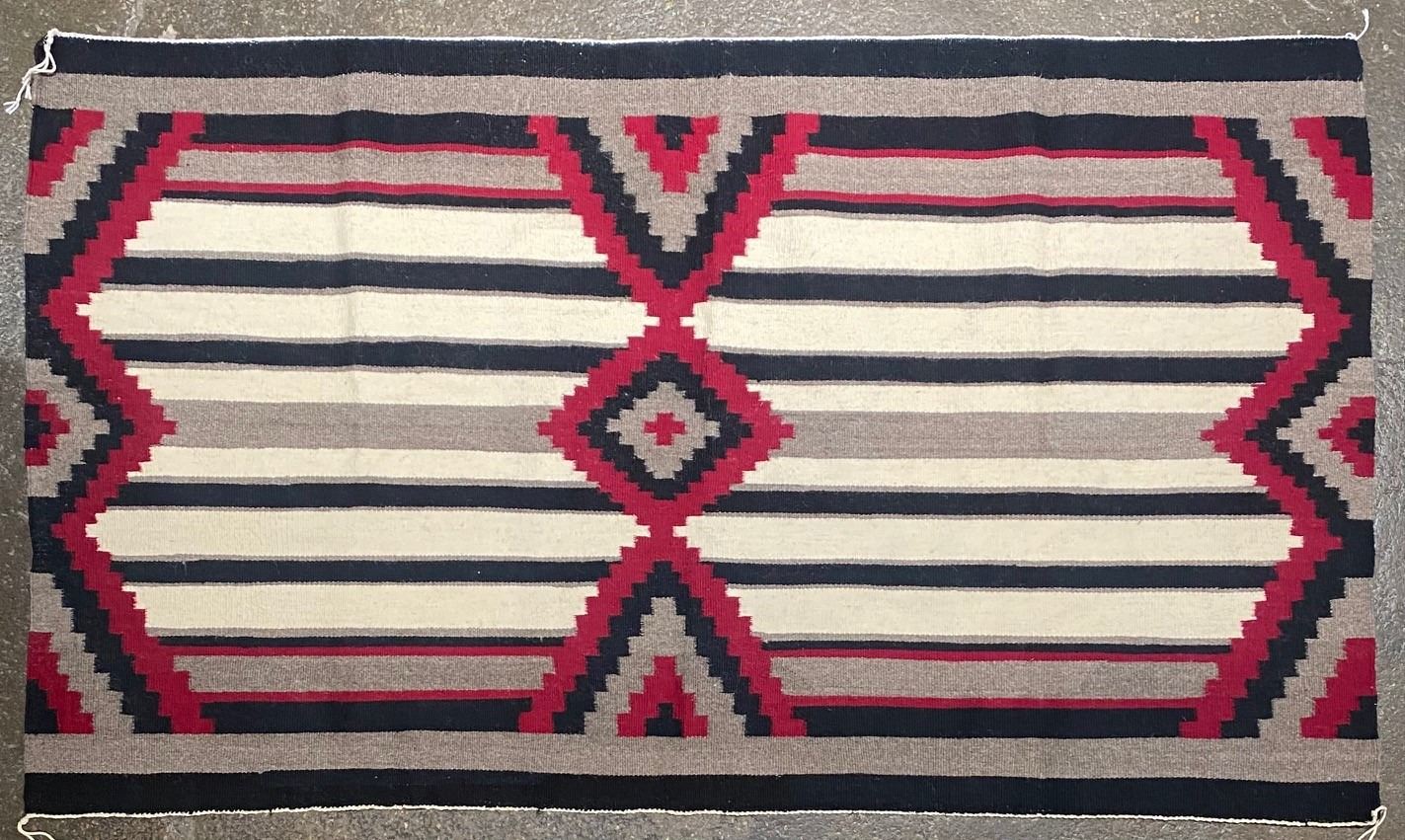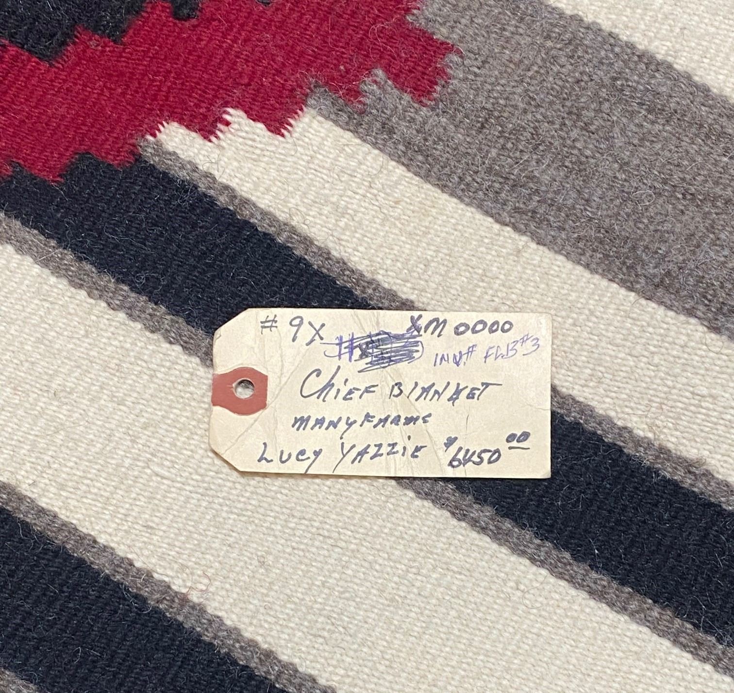 Circa 1980 Weaving by Lucy Yazzie in a Third Phase Chiefs Blanket Style. Old Tag has it sold by Nizhoni Indian Arts in Durango, Colorado.