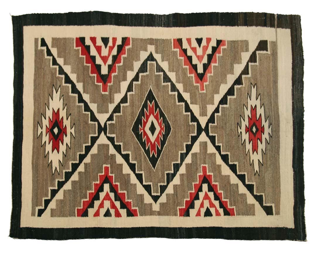Navajo Weaving. 67" x 51". Circa 1940s-1950s. (est $1,000-1,500). For condition reports please visit: www.auctioninsantafe.com/cr2011.pdf