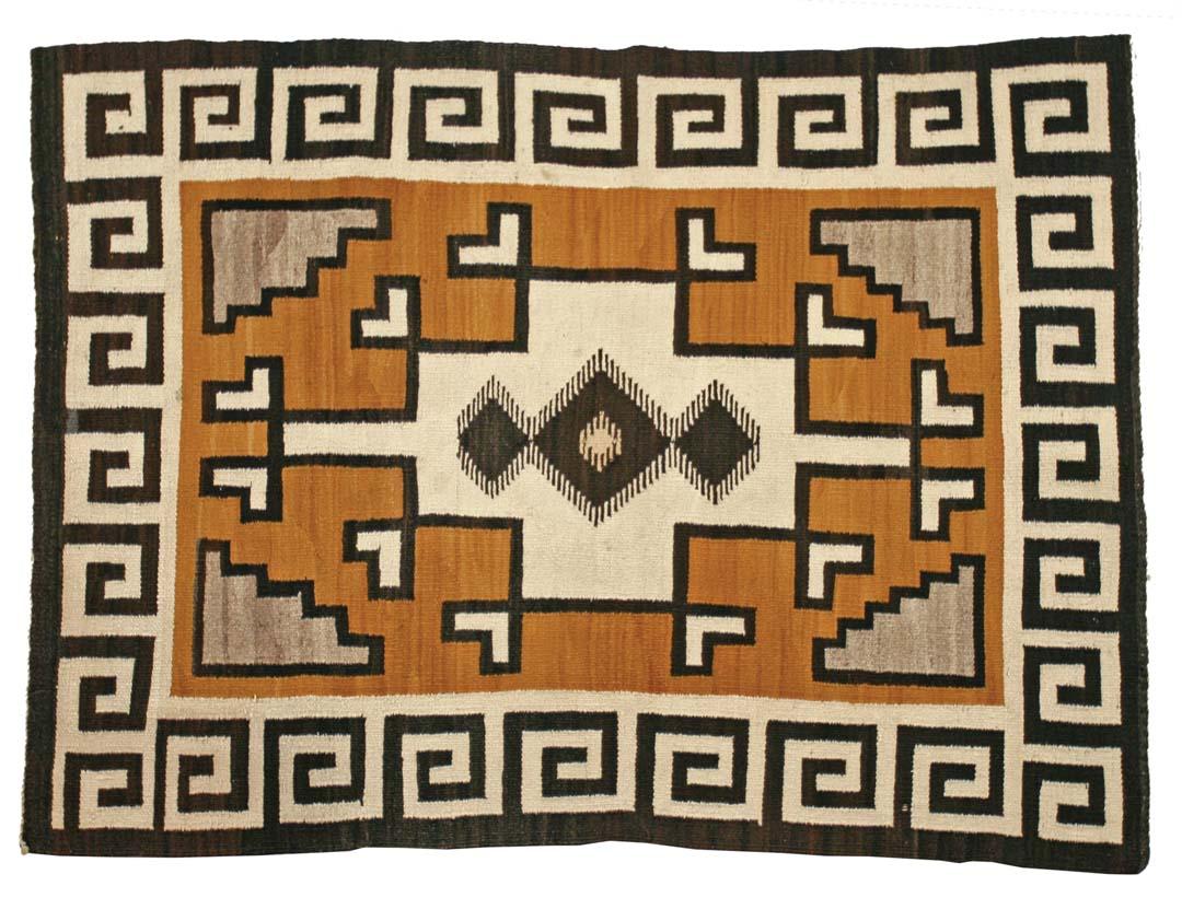 Navajo Weaving. 43" x 32". Circa 1970s. (est $400-600). For condition reports please visit: www.auctioninsantafe.com/cr2011.pdf