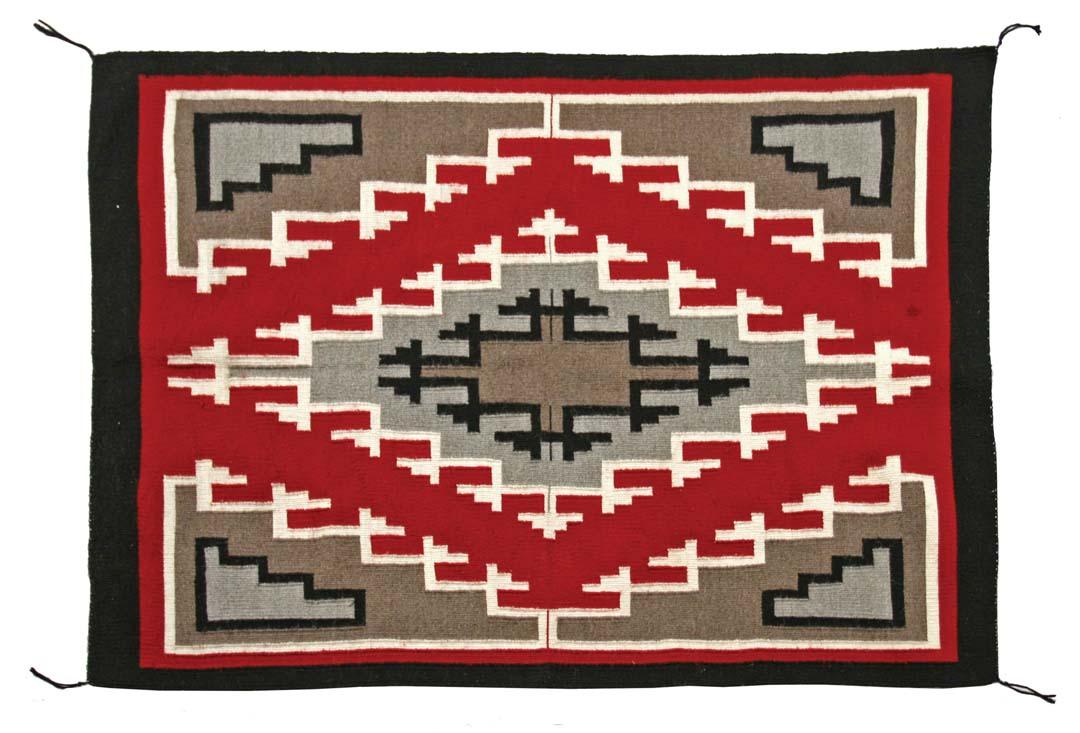 Navajo Weaving. 54" x 38". Excellent tight weave. Circa 1970s. (est $600-800). For condition reports please visit: www.auctioninsantafe.com/cr2011.pdf