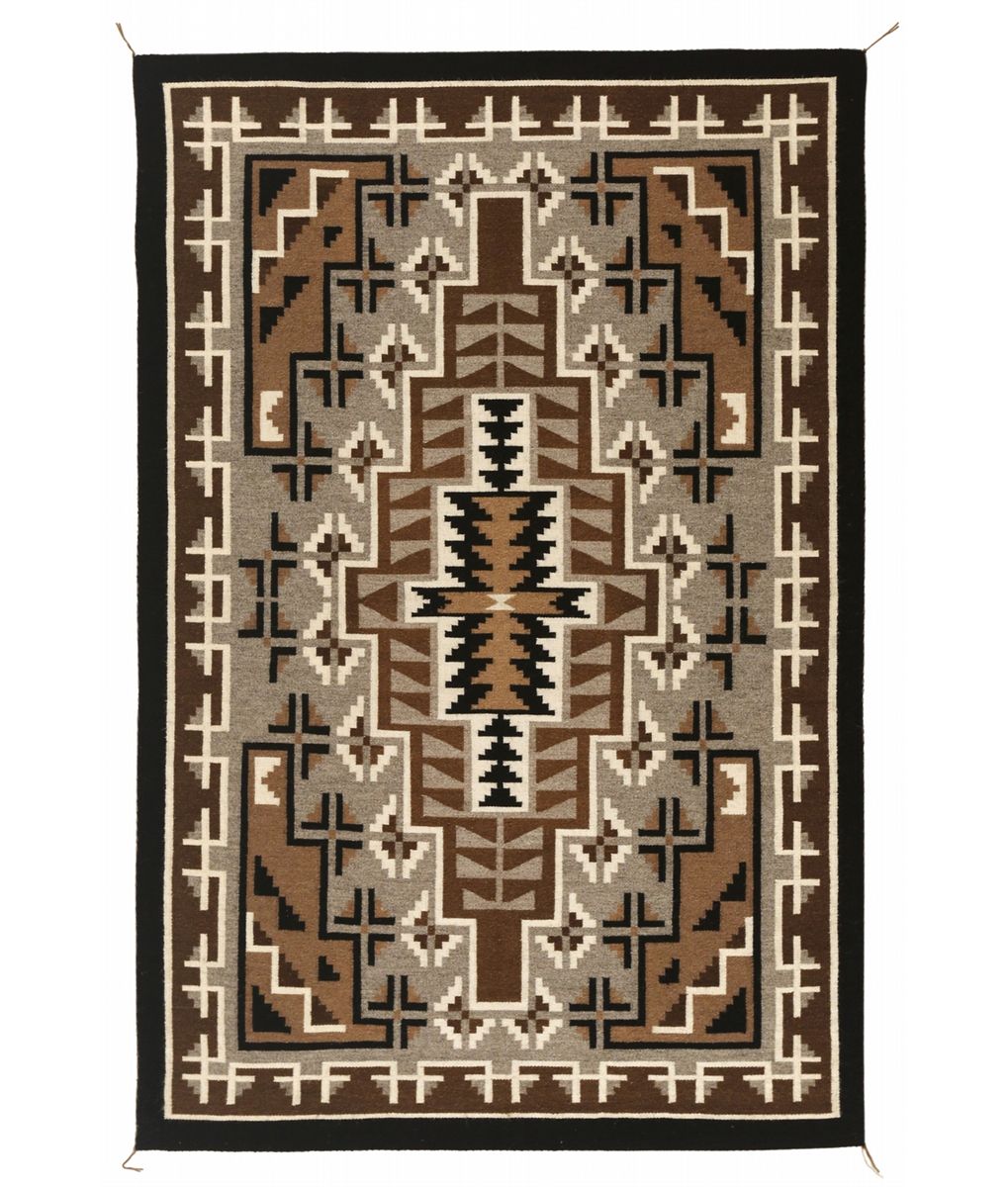 Navajo Weaving. 3'6" x 5'3". Two Grey Hills area weaving in traditional style and colors. Woven by Mary Henderson. Late 20th century. Provenance: Indian River Gallery.