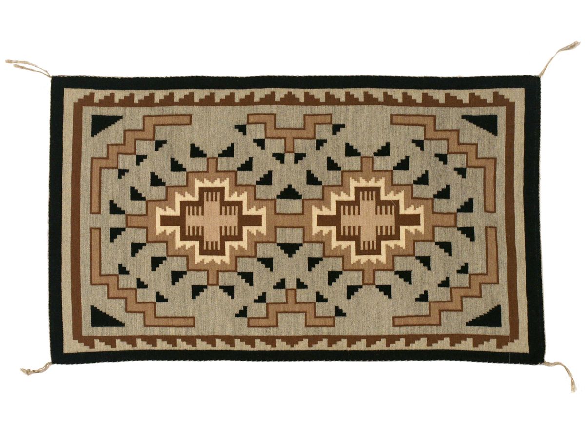 Navajo Weaving, 3'7" x 2'1". Two Grey Hills area. Fine tapestry weave. Woven by Lucy Tsosie. 20th century.