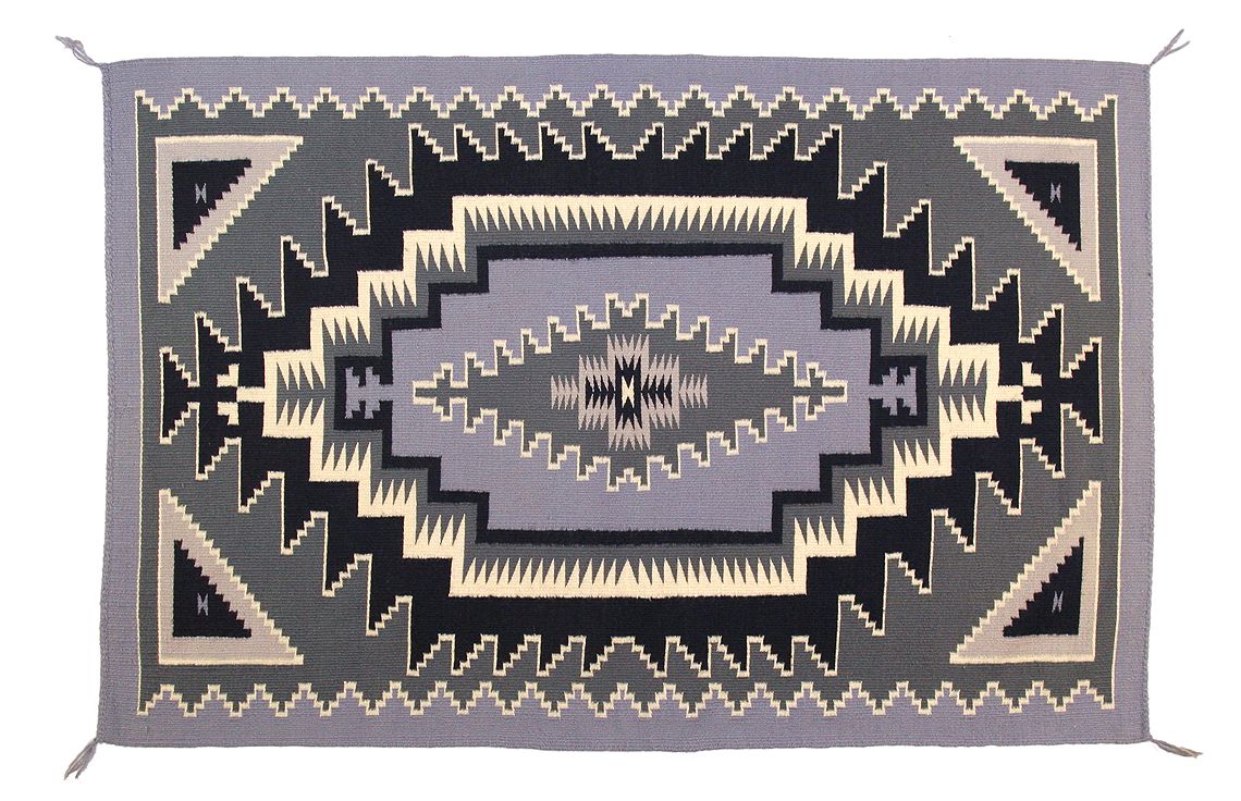 Navajo Weaving. 4'11" x 3'2" blue background. Circa 1960s. (est. $1,000-2,000). CONDITION REPORTS: www.auctioninsantafe.com/docs/cr2012.pdf