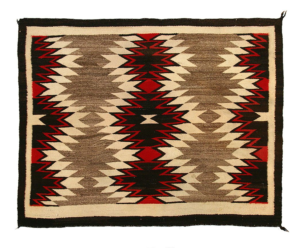 Navajo Weaving. 4'6" x 3'7". Homespun wool. Circa 1930. (est. $800-1,200). CONDITION REPORTS: www.auctioninsantafe.com/docs/cr2012.pdf