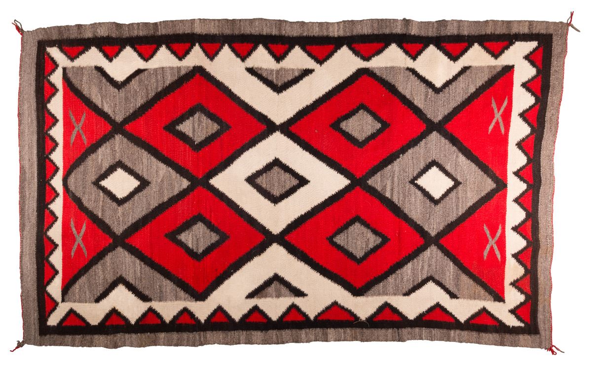 Navajo Weaving. 4'7" x 7'6". A classic, large, bold design woven from hand-spun, Churro Sheep wool. Circa 1920.