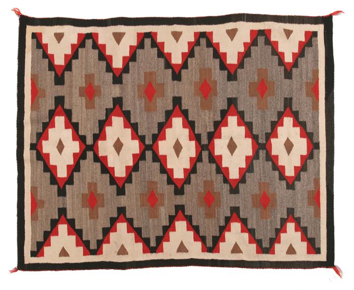 Navajo Weaving. 49" x 60". Classic colors. Condition Report: No a/b. Stains in one corner, otherwise in fine condition.