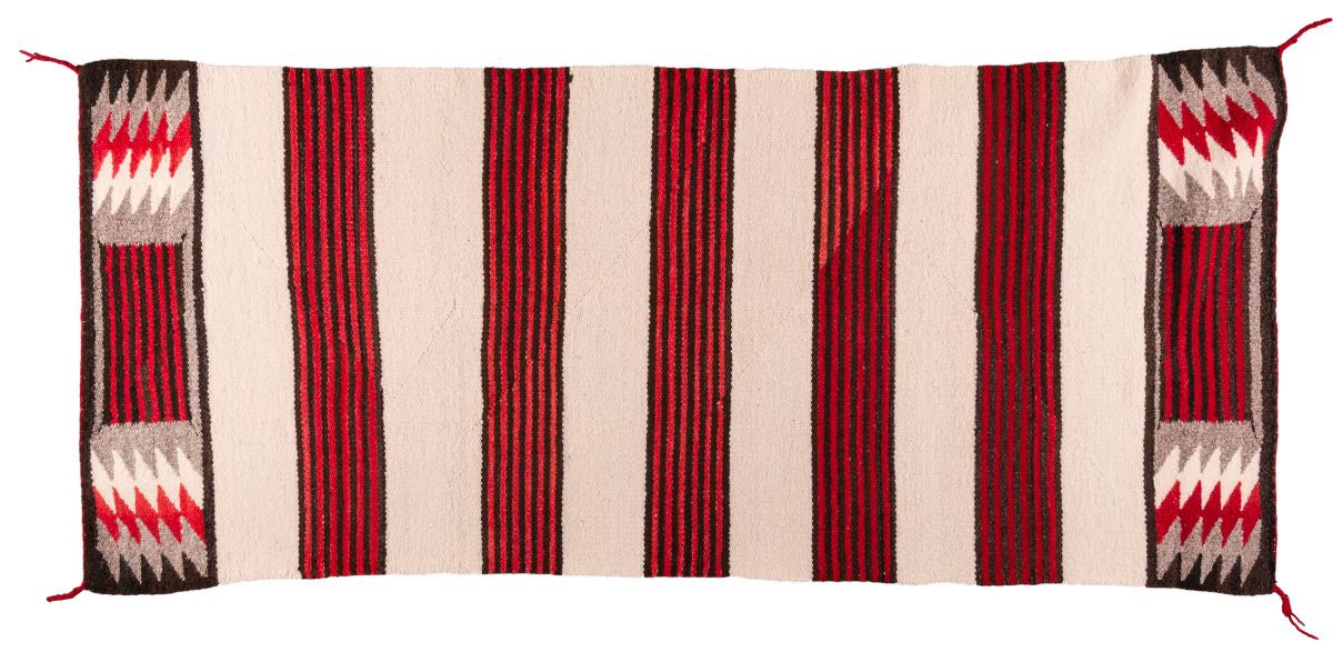 Navajo Weaving. 5'1" x 2'2". Pictorial double saddle blanket. Circa 1920s.