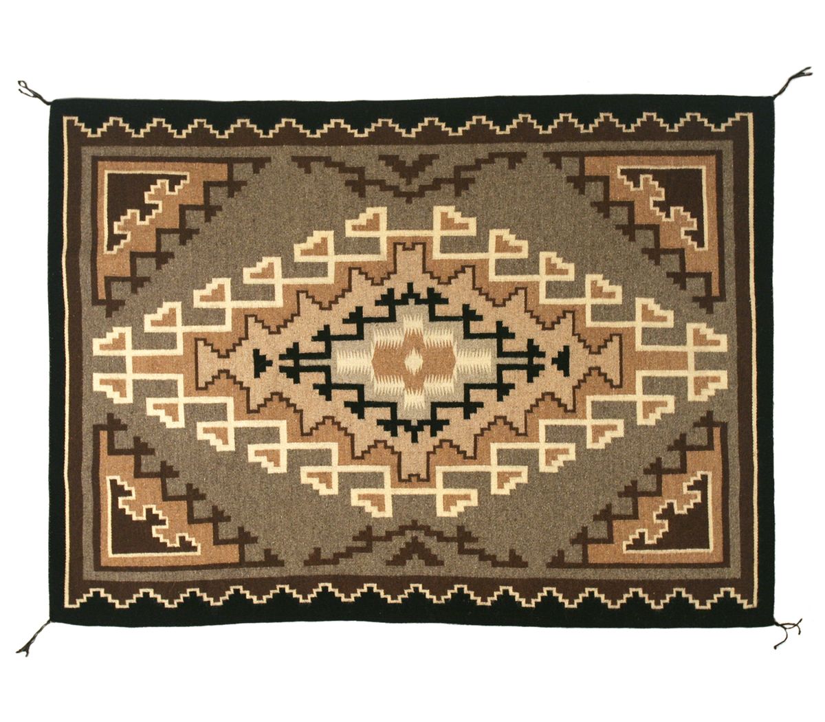 Navajo Weaving. 5'10" x 4'4". Two Grey Hills area. Intricate weave. Woven by Maggie Elthe of Pinon, AZ. 20th century.