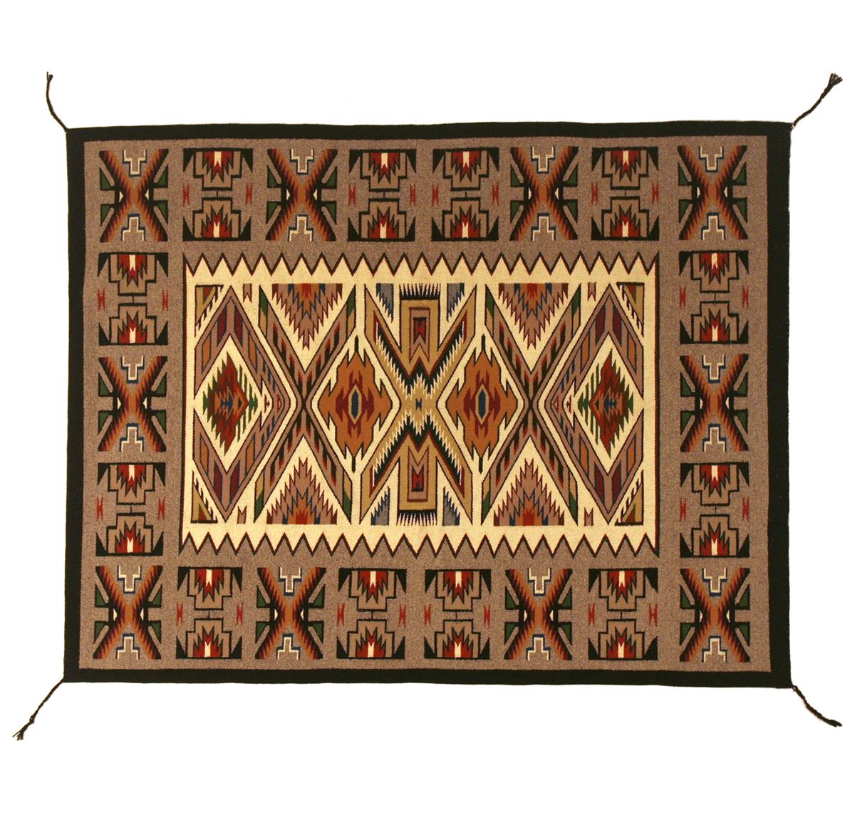 Navajo Weaving. 5'3" x 4'1". Teec Nos Pos area. Classic colors and design. Woven by Bessie Littlebear. 20th century.